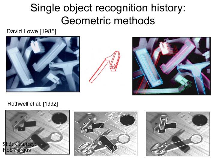 图像识别刚开始的时候是从单一的物体识别做起。上边这张图像展示的是传统的几何方法的结果。我们的客观世界那么复杂、那么多样,我们该怎么做识别呢?