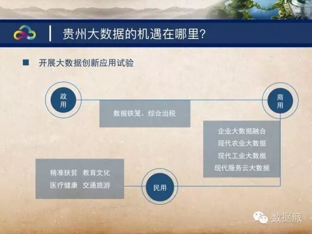 大数据过去没有成熟的思路,没有系统的办法,贵州省委省政府专门进行了研究,我们的省委书记陈敏尔从哲学的高度,提出来我们做大数据首先思考三个问题,数据从哪里来?数据放在哪儿?数据如何用?