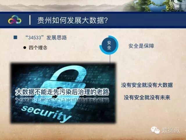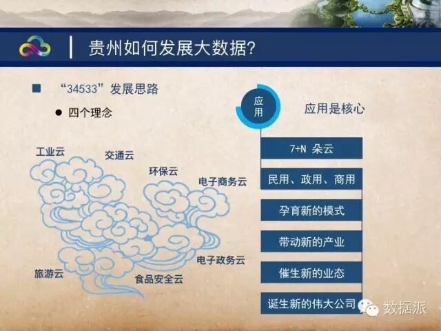 回答这些问题要抓住四个原则,四个理念,这就是贵州省这两年来一直坚持的发展大数据的四个理念。
