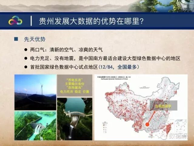大数据需要数据中心承载,大型数据中心需要建在气候凉爽、电力充足、没有地震的地方。在中国南方,只有贵州。工信部评估报告显示,贵州是中国南方最适合建设大型绿色数据中心的地区。贵州已成为工信部批准的首批国家绿色数据中心试点地区。因此,我们从发展数据中心起步,推进数据资源集聚。