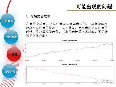 量化交易策略的评测之前有提到过,不再重复。这里来谈谈评测中间的陷阱。第一个陷阱,忽略交易成本。之前提到交易成本包括:手续费、流动性成本、冲击成本、机会成本。