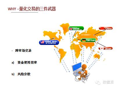 量化交易第三件武器就是可以跨市场交易。在跨市交易中你可以提高资金的使用效率,分散风险,一份资金可以交易很多市场。