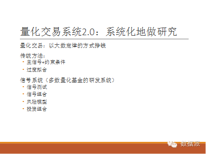 带着两个问题去读:如何评估量化交易策略;量化交易研发的流程是什么。)系统化研究是做信号系统,多数量化基金的研究方法,它会考虑信号测试、信号组合、风险模型、投资组合几个部分。