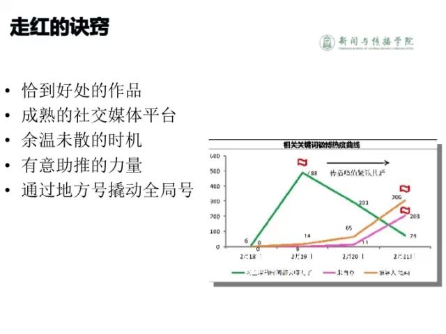 还有一点是通过小V撬动中V,再撬动大V。现在我们一方面是通过央媒,全国通稿的模式来撬动舆论场。另外一种模式是通过社区媒体中的中小V撬动大V的转发。