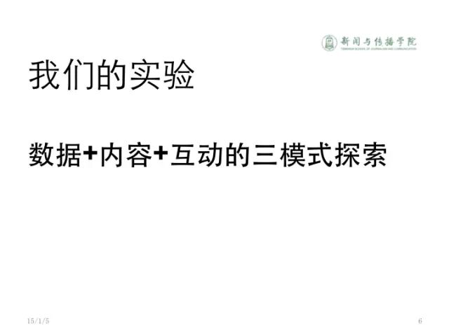 非常高兴来这里跟大家交流。我的演讲题目是:《新媒体指数和传播风暴的研究》。做传播的人跟研究其他专业的人不太一样,做传播的人既要做内容,还要想到做传播。始终想到我做了这个东西怎么样去做传播。这是传播专业方面的训练。所以相对来说我们会比较关注怎么样把做出来的东西传播好。