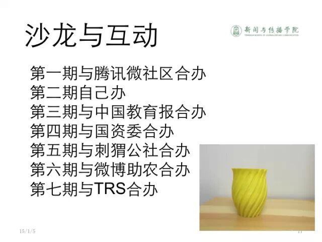 我们有数据、有内容了,还要考虑互动,只有互动了才能把人紧密的联系起来。目前为止我们办了七期沙龙。后天下午在这个教室还会办一个沙龙。