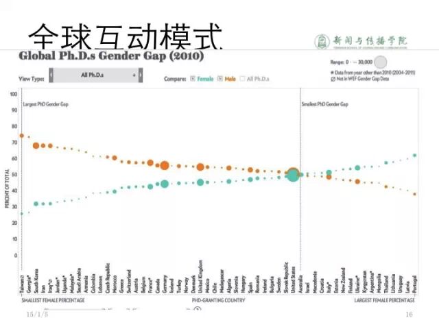 我一般把它建成为善待博士。全是用户产生的内容,这是一个网友投稿,投稿的都是博士。大量的图片都是女博士的照片。还有很多是非常有意思的各种跟科研相关的议题。这是一个网友投的稿,全球的博士性别比例的图片。