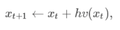 是第t次迭代的结果,h是步长,v(x)是如下向量场: