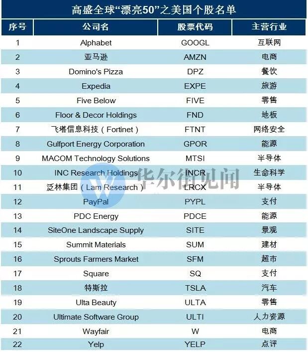 这次高盛选出的全球“漂亮50”和中国“漂亮50”有所重合。