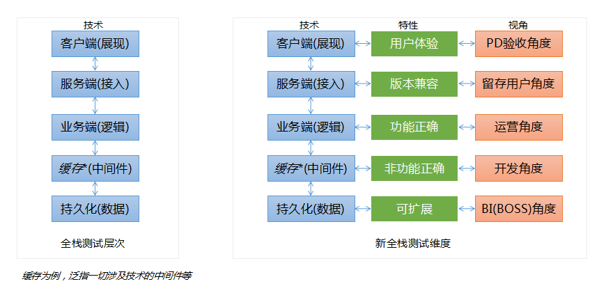补充解释:过去的全栈更多在纵向技术维度,即客户端+服务端贯通,而新全栈测试的思想,