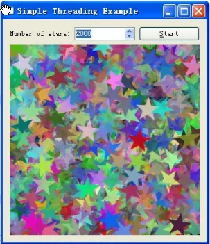 具体的绘制代码和多线程关系并不大,我们只是在区域内随机地点绘制不同的五角星。