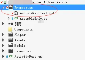 <application android:label="Tsingda.DataCenter.AndroidNative" android:icon="@drawable/Icon"> <activity android:name="com.alipay.sdk.app.H5PayActivity" android:configChanges="orientation|keyboardHidden|navigation" android:exported="false" android:screenOrientation="behind"></activity> <activity android:name="com.alipay.sdk.auth.AuthActivity" android:configChanges="orientation|keyboardHidden|navigation" android:exported="false" android:screenOrientation="behind"></activity> </application>