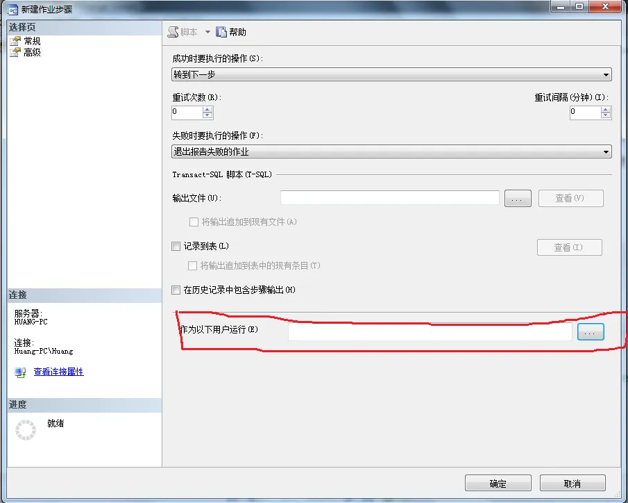 方法2:在T-SQL作业中使用RUN AS USER提示来执行T-SQL作业。这样不需要更改原有的权限。但是此过程确保你有足够的权限赋予RUN AS USER。如图: