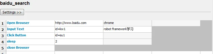 更多关键的使用,请参考相关API 文档。这里不过多介绍。按照上面的方法。创建百度搜索用例如下: