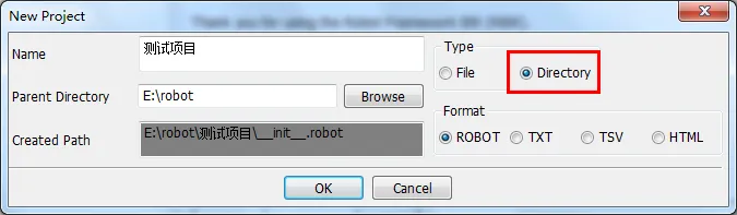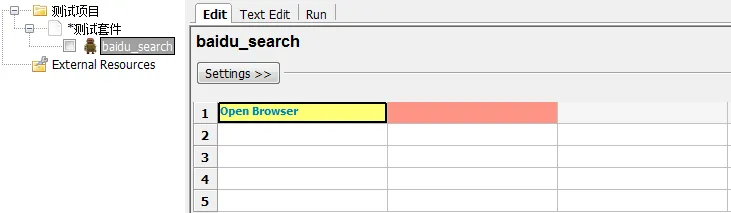 下面我们就一步一步的创建第一条用例,至于细节不多解释,只是对RF框架写用例有个感性的认识。