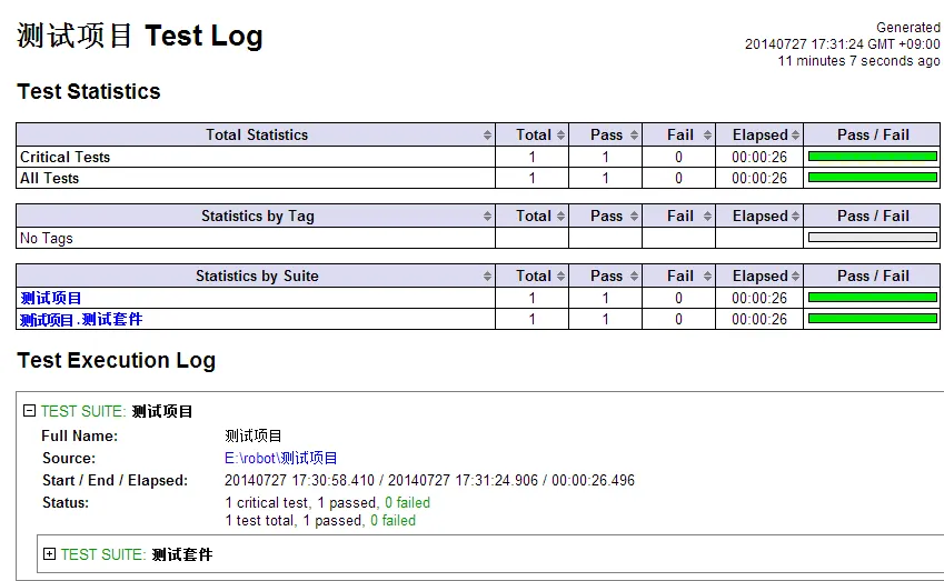 我们重点查看Log.html和Report.html ,Log.html更关注脚本的执行过程的记录,Report.html更关注脚本的执行结果的展示。