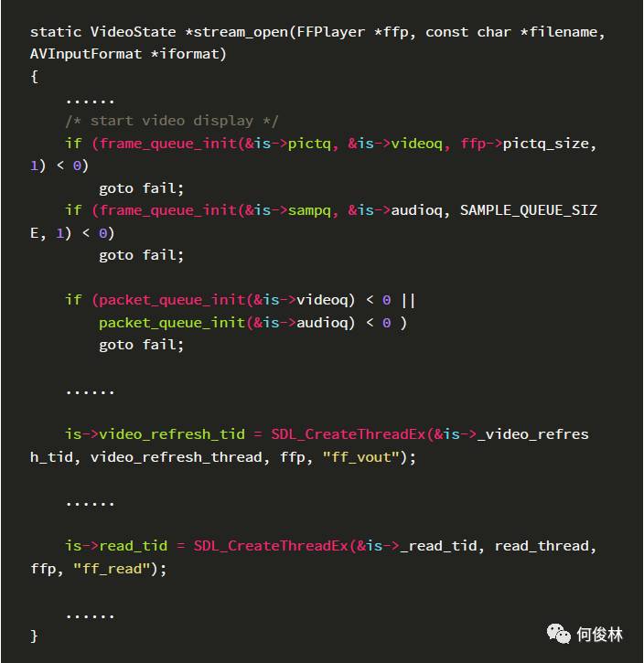 当外部调用prepareToPlay启动播放后,ijkplayer内部最终会调用到ffplay.c中的