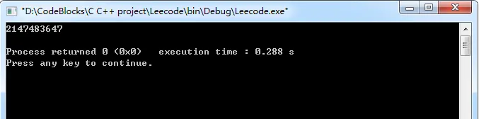#include<iostream> #include<cctype> #include<climits> using namespace std; class Solution { public: int atoi(const char *str) { const char *p=str; int arr[100]= {0}; int dot=0; char flag='+'; int i=0; while(isspace(*p)) p++; //注意符号的判断 if(*p=='-') { flag='-'; p++; } else if(*p=='+') p++; //数字的开始位置 const char *start=p; //注意字符数组结束位置的判断 while(*p!='\0') { //只能有一个.,且一遇到就返回,因为只取整数 if(*p=='.') { if(dot) return 0; dot++; break; } //只有刚开始的地方不是数字才会错误,取完数字之后后面出现字符不会报错,例如134aa,返回134 if(p==start&&!isdigit(*p)) return 0; if(isdigit(*p)) { arr[i]=*p-'0'; p++; i++; } else break; } long long num=1; dot=p-start; while(--dot>0) num*=10; long long sum=0; i=0; while(p!=start) { sum+=arr[i]*num; //在计算每一次都判断sum,不能等计算完成之后判断,不然会溢出 if(flag=='+'&&sum>INT_MAX) return INT_MAX; if(flag=='-'&&-sum<INT_MIN) return INT_MIN; i++; num/=10; p--; } if(flag=='+') return sum; else return -sum; } }; int main() { const char *str=" 9223372036854775809"; Solution s; cout<<s.atoi(str)<<endl; }
