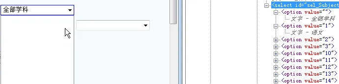 通过开发人员工具查看,下拉列表框是有Options的,但你点击选择的时候却什么也不显示。