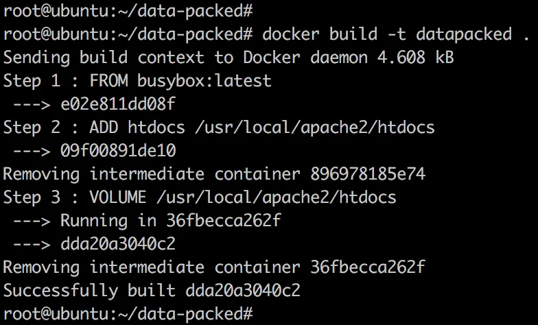 用新镜像创建 data-packed volume container: