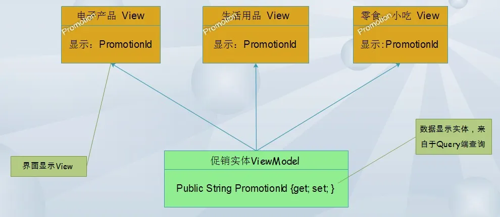 在网站型的系统中,尤其电子商务平台,界面的变化很常见,几乎每天都有可能改变界面上的某个显示方式,同样一组数据可能在UI上的展现方式各不相同;这里就会形成一个Model与多个View的组合关系,同样一个Promotion(促销)数据上下文,需要在很多注销类别不同的UI上展现,而不同的UI组成都是由不同的View的负责生成;