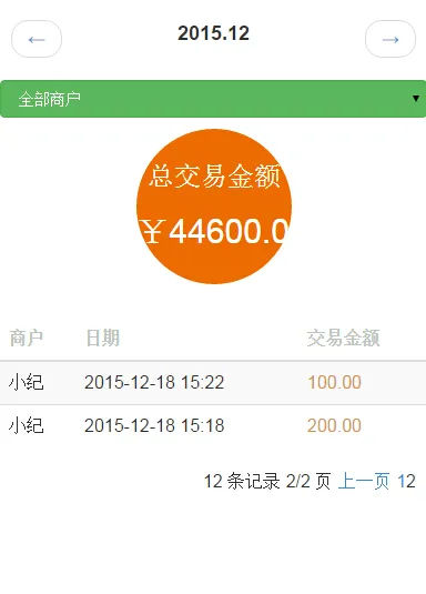 <include file="Public:head" title="交易详情" /> <style> .top { background-color: #eee; height: 50px; line-height: 50px; font-size: 18px; border-bottom: #ddd 1px solid; margin-bottom: -1px; } .list-group{ border: 1px solid #DDDDDD; } .list-group .list-group-item { text-align: left; line-height: 25px; border: none; background-color: #F9F9F9; font-size: 14px; } #select-date { padding: 0px 10px; } #select-date .date-txt { font-size: 18px; } #total { width: 140px; height: 140px; background-color: #EC6C00; margin: auto; } #total .money-txt { color: white; padding-top: 10px; } #datalist { margin-top: 30px; } #relief .form-control{ margin-top: 10px; margin-bottom: 10px; /*background-color: #FFCE42;*/ } .page{ margin-right: 10px; margin-bottom: 20px; } .table th { color: #C4C4C4; } .table tbody tr td+td+td { color: #D3964F; } </style> <script type="text/javascript"> function lastMonth(){ todo('last'); } function nextMonth(){ todo('next'); } function selectUser(){ todo('selectuser'); } function todo(type){ var s_year = $('#s_year').val(); var s_month = $('#s_month').val(); var s_user_id = $('#s_user_id').val(); window.location.href="{sh::U('User/trade')}&s_year="+s_year+"&s_month="+s_month+"&s_user_id="+s_user_id+"&type="+type; } </script> <body> <div data-example-id="list-group-btns" class="bs-example"> <div id="select-date"> <ul class="pager"> <li class="previous"><a onclick="lastMonth();"><span aria-hidden="true">←</span> </a></li> <span class="date-txt"><strong>{sh:$s_year}.{sh:$s_month}</strong> <present name="paymentData"><span class="glyphicon glyphicon-ok-sign" aria-hidden="true"></span></present> </span> <input type="text" id="s_year" value="{sh:$s_year}" hidden="hidden"> <input type="text" id="s_month" value="{sh:$s_month}" hidden="hidden"> <li class="next"><a onclick="nextMonth();"><span aria-hidden="true">→</span></a></li> </ul> </div> <div id="relief"> <select id="s_user_id" onchange="selectUser();" class="form-control btn-success"> <option value="">全部商户</option> <volist name="user_list" id="vo"> <option value="{sh:$vo.id}" <eq name="vo.id" value="$s_user_id">selected="selected"</eq>>{sh:$vo.username}</option> </volist> </select> </div> <div id="total" class="img-circle"> <div class="text-center money-txt"> <h3>总交易金额</h3> <h2>¥{sh:$totalprice}</h2> </div> </div> <div id="datalist"> <table class="table table-striped"> <thead> <tr> <th>商户</th> <th>日期</th> <th>交易金额</th> <!-- <th>状态</th> --> </tr> </thead> <tbody> <empty name="list"><tr><td class="text-center" colspan="4">暂无数据</td></tr></empty> <volist name="list" id="vo"> <tr> <td>{sh:$vo.username}</td> <td>{sh:$vo.paytime|date="Y-m-d H:i",###}</td> <td>{sh:$vo.price}</td> <!-- <td> <if condition="$vo.progress eq 1"><span class="text-primary">待发货</span> <elseif condition="$vo.progress eq 2"/><span class="text-danger">待签收</span> <elseif condition="$vo.progress eq 3"/><span class="text-success"><strong>已完成</strong></span> </if> </td> --> </tr> </volist> </tbody> </table> <div class="page text-right"> {sh:$page} </div> </div> </body> </html>