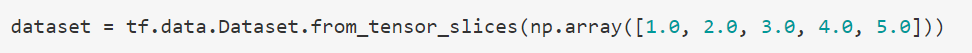 这样,我们就创建了一个dataset,这个dataset中含有5个元素,分别是1.0, 2.0, 3.0, 4.0, 5.0。