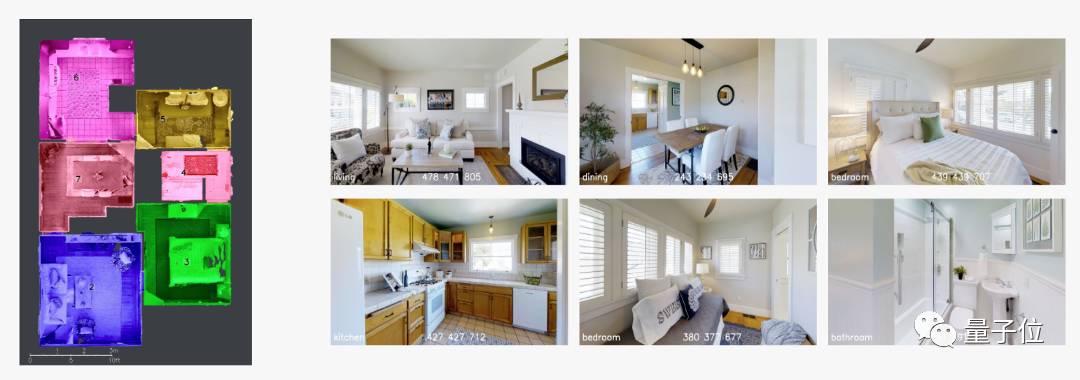 目前,我们内部用这个数据集做过这样一个系统,将用户拍摄的照片分割成房间,并将其分类。这个系统的表现不错,甚至在没有门或隔断隔开情况下,也能分辨出不同的房间类型(例如厨房和餐厅)。