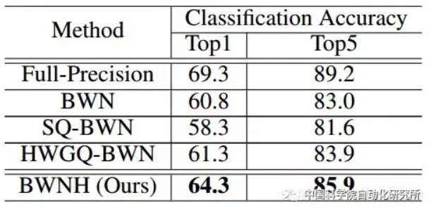 团队首先在VGG9小网络上对方法进行验证,并且在AlexNet和ResNet-18上超过当前的二值权重网络。特别的,在ResNet-18上,该方法比当前最好方法的精度提高了3个百分点。获得了较好的实验结果。