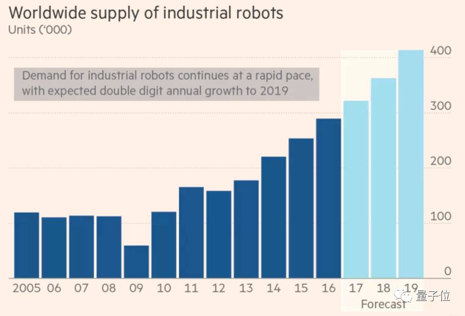 △ 全球对工业机器人需求逐年增加/图片来自FT
