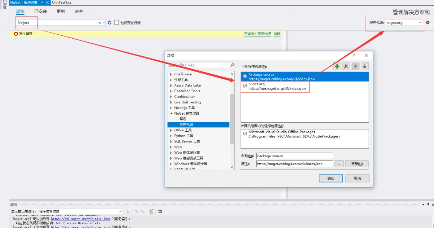 解决办法:添加一个新的源,Nuget.org取消勾选