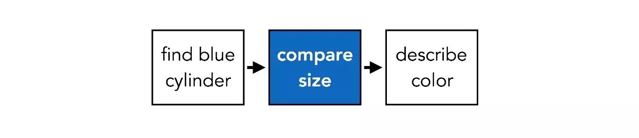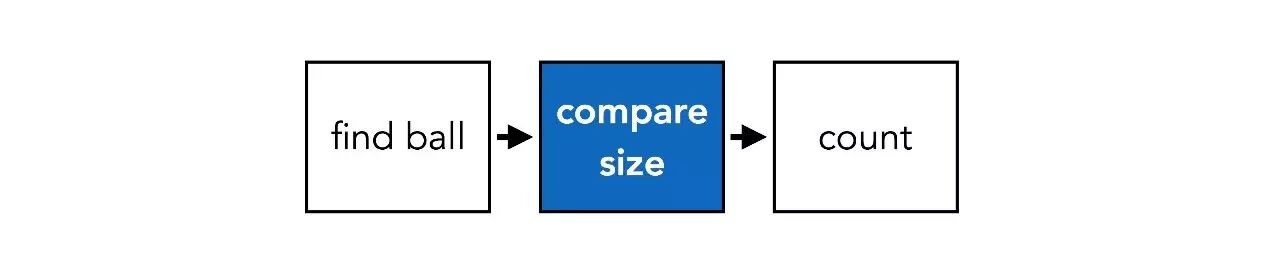 换个问题,步骤也会不一样。当问题为“有多少与球尺寸相同的物体?”,流程图会变成这样: