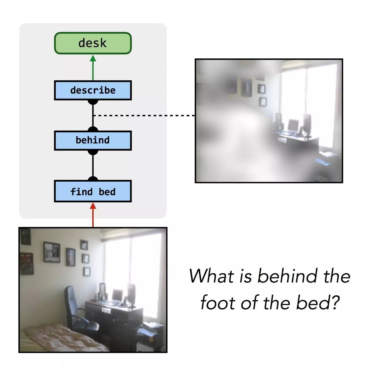 假设我们想要开发出一种家用机器人,能够回答关于周围环境的一些问题。
