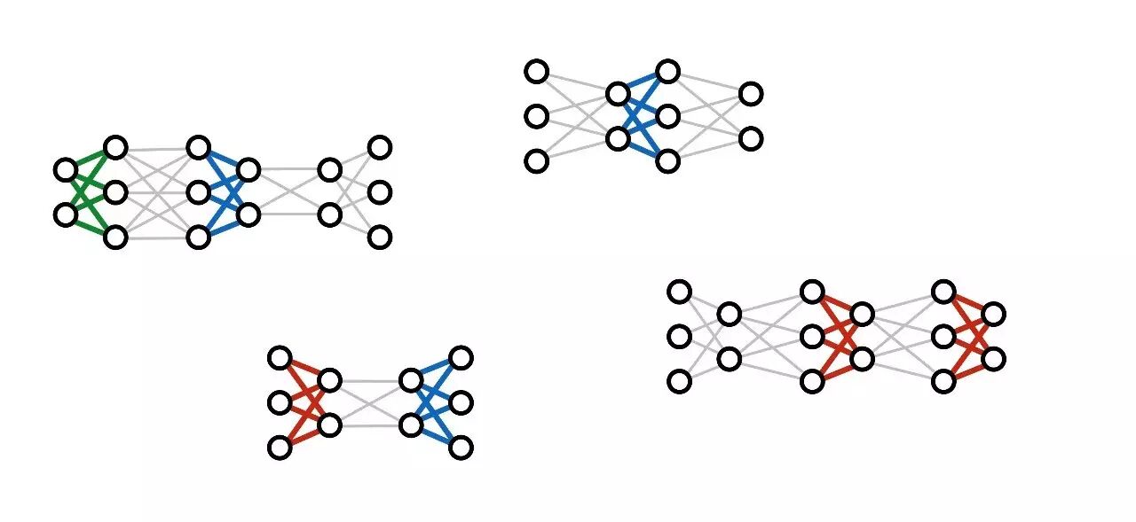 我们不是训练一个神经网络,让它能完成多对输入输出,而是同时训练大量不同的网络,然后在合适的地方将它们的参数匹配起来。