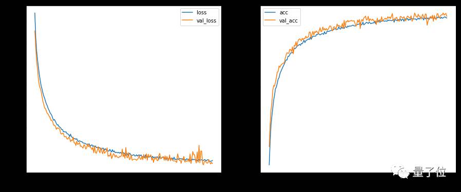 损失函数为分类交叉熵(Categorical Cross Entropy)。优化器optimizer使用了随机梯度下降中的RMS Prop方法,通过该权重临近窗口的梯度平均值来确定该点的学习率。