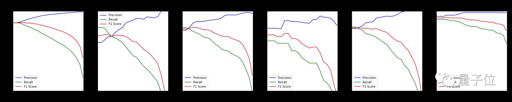 对于预测类别的概率最小值,画出F1-score、召回率和正确率来比较效果。