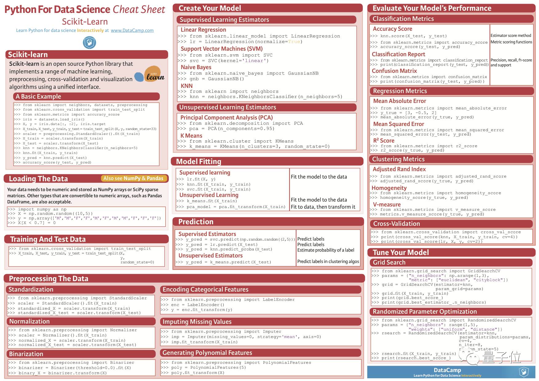 比如说下面这些机器学习小抄,由GitHub用户kailashahirwar从各处搜集而来: