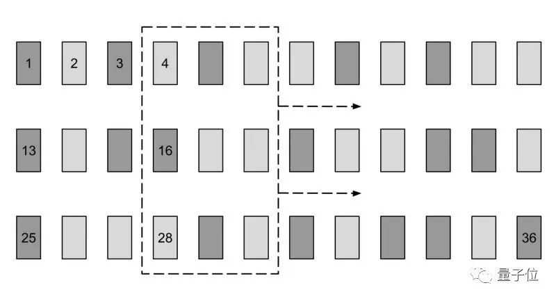 图4:将数据拆分为多列的原理图,用数字标出序列顺序,箭头表示相邻的时间步。