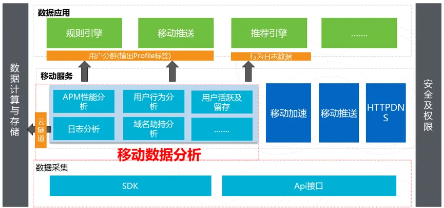 移动数据分析Mobile Analytics是集App数据采集、分析报表、个性化加工、营销应用等为一体的数据化运营门户:支持Native及H5页面行为自动采集、通用的多维度用户行为分析、支持日志自主加工分析、快速实现定向营销,助力移动开发者实现基于大数据技术的精细化运营、提升产品质量和体验、增强用户黏性。