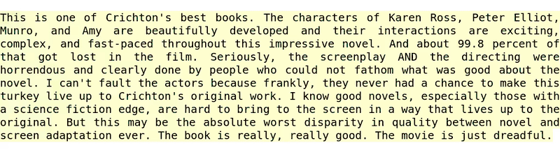 有趣的是,在完成句子和短语之后,系统仍会进行大量更新。 比如说“And about 99.8 percent of that got lost in the film”这个句子,即使“in the film”本身没有表达情感,系统还是在前面的“lost”之后、以及在句子结束后,将情感值向更消极的方向进行了更新。