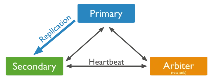 副本集要求参与选举投票(vote)的节点数为奇数,这很容易理解。当我们实际环境中因为机器等原因限制只有两个(或偶数)的节点,这时为了实现Automatic Failover引入另一类节点:仲裁者(arbiter),仲裁者只参与投票不拥有实际的数据,因此它对物理资源要求不严格。
