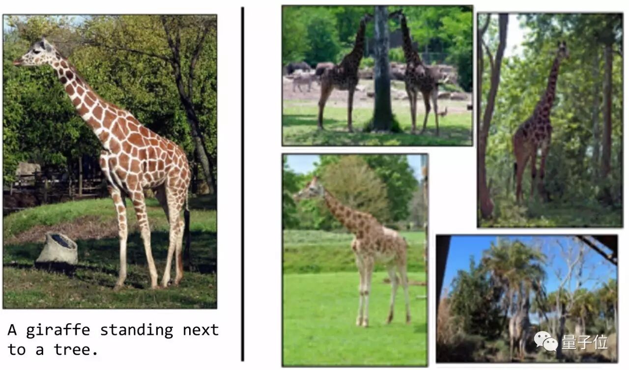 此图片的对应生成字幕是“长颈鹿站在树旁边”。但是如果我们观察其他图片,我们可能会注意到,对于任何带有长颈鹿照片,它可能都会生成标题“一只长颈鹿站在树的旁边”,因为在训练集中,带有长颈鹿的图像样本经常出现在树林附近。