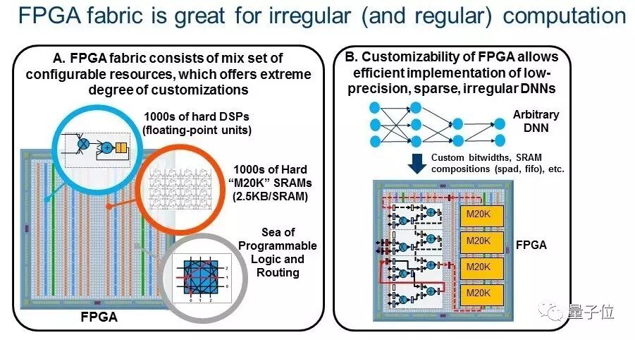 新兴的低精度和稀疏DNN算法比传统的密集FP32 DNN提供了数量级的算法效率改进,但是它们引入了难以处理的不规则并行度和定制数据类型。这时FPGA的优势就体现出来了。这种趋势使未来FPGA成为运行DNN,AI和ML应用的可行平台。