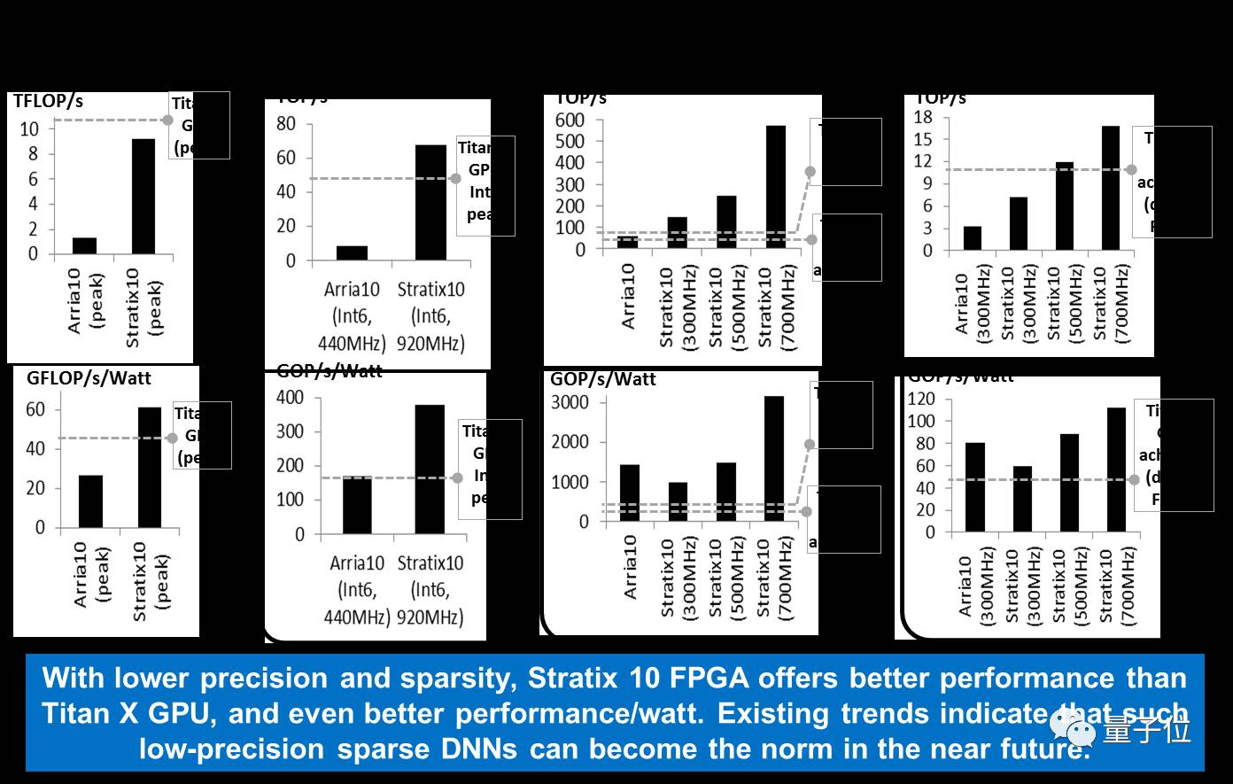 这一研究,主要评估在DNN(深度神经网络)算法领域,两代英特尔FPGA(Intel Arria10和Intel Stratix 10),与NVIDIA TITAN X Pascal GPU相比性能如何。
