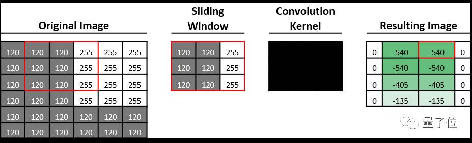 △ 图12:应用垂直边缘滤波器对突出显示的红色区域进行卷积,从而在生成矩阵上获得红色最终值