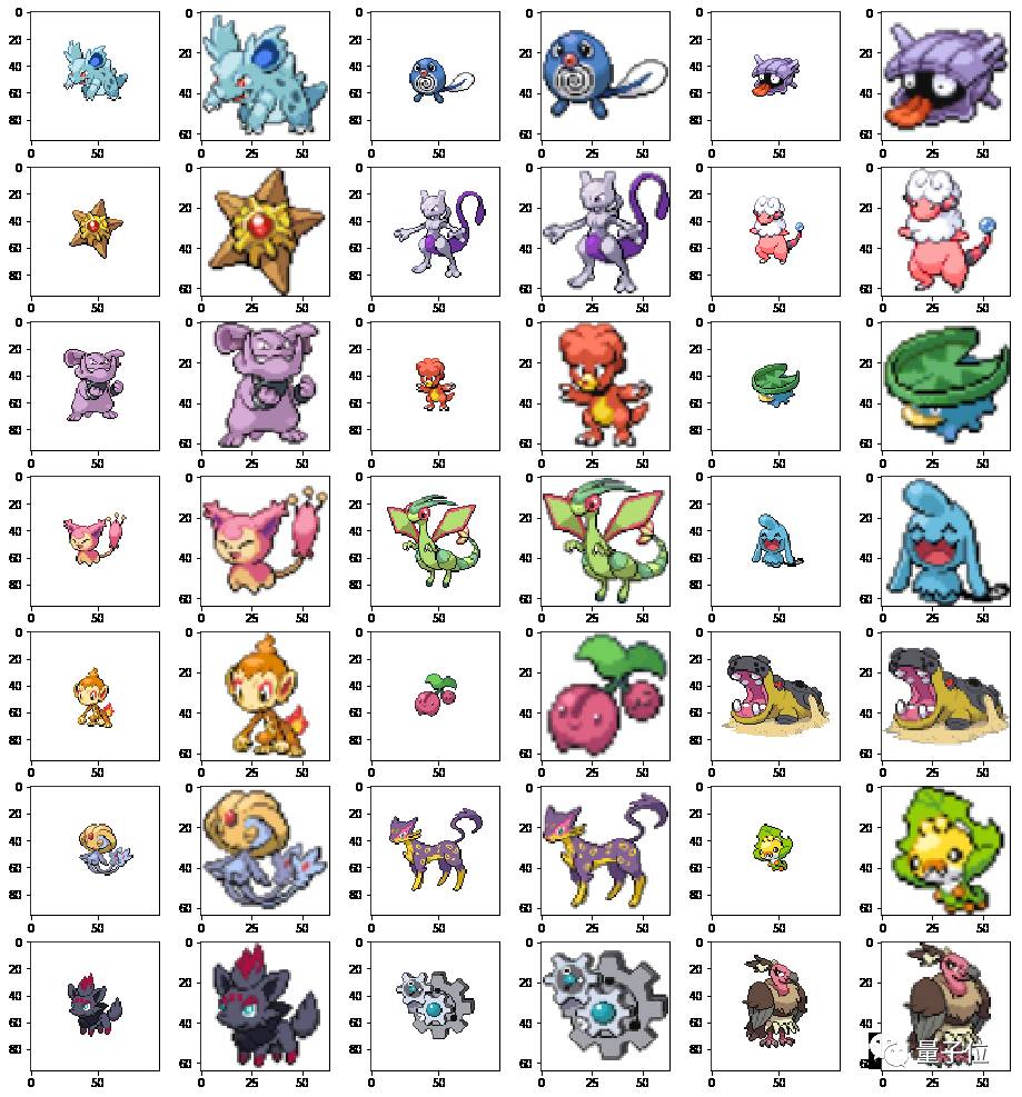 为了训练网络模型,我在Veekun(https://veekun.com/)上获得了所有游戏精灵的数据集。这个数据集包括了游戏第一代到第五代出现的精灵。后来发布的第六、七代游戏中有新的精灵,但这些精灵使用了三维动画模型,从游戏中提取精灵图像比较困难,机器学习的方法不支持对这种格式进行训练。因此在本文中,我们将只使用Pokémon前五代所推出的649个精灵图像。