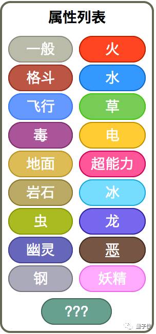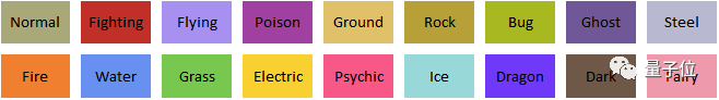 △ 图2:18种口袋妖怪的属性,用它们常用背景颜色来进行区分