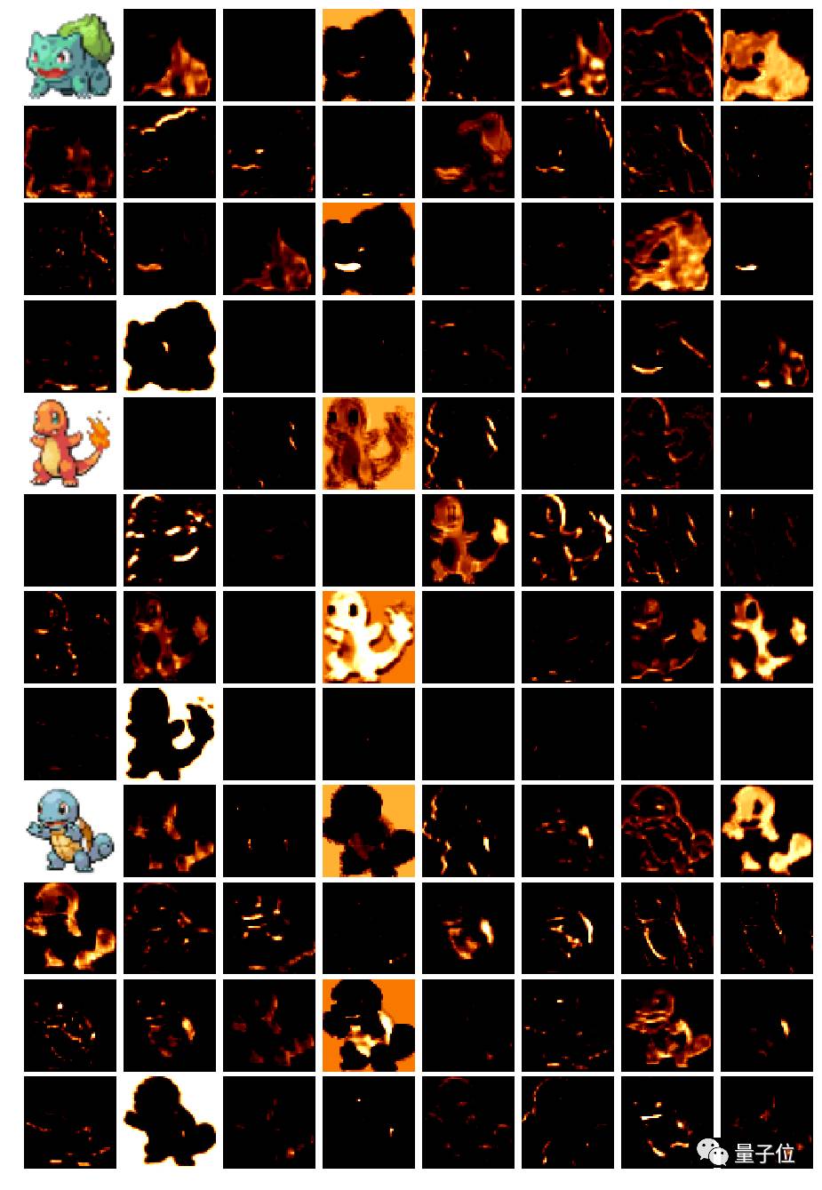 △ 图24:用第一卷积层的内核来处理第一代初学者精灵图像所得到的效果