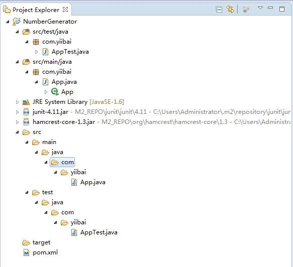 NumberGenerator |-src |---main |-----java |-------com |---------yiibai |-----------App.java |---test|-----java |-------com |---------yiibai |-----------AppTest.java |-pom.xml