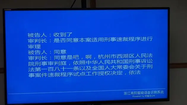 “现在开庭。”6月7日上午,随着一声清脆的法槌声,被告人宣某危险驾驶案在浙江省杭州市西湖区人民法院开庭审理。法官话音未落,显示屏上就同步出现汉字:“审判长:现在开庭”……十分钟不到,庭审结束,显示屏上记录着庭审中法官和诉讼参与人说的每句话,但书记员却从始至终都没有碰过电脑键盘。